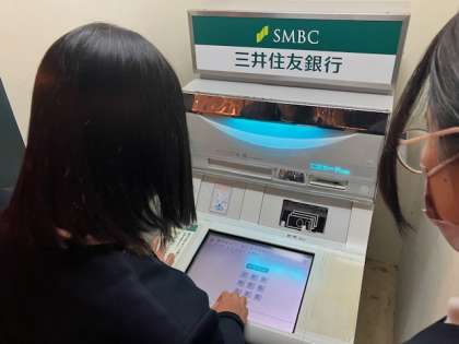 最後に機械で精算をしています。キッゾを引き出す子や預ける子、いろいろです。