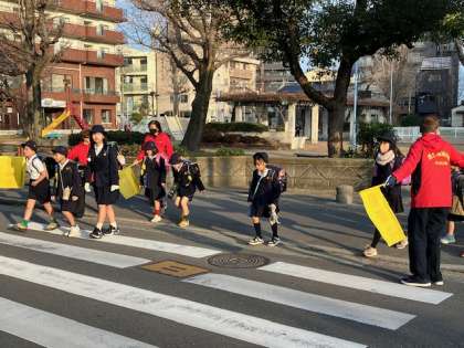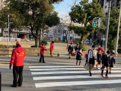学校の玄関前も、遠くの信号も、たくさんの見守り隊の方々が子どもたちを見守ってくださっています。車だけでなくいろんなものから守ってくれています。ありがとうございます〜!