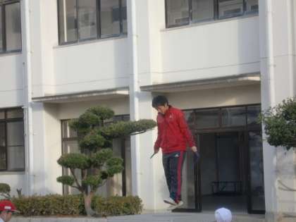 8時30分〜8時40分に運動場でなわとび集会を行いました。川田先生のお手本を見て様々な跳び方に挑戦しました。