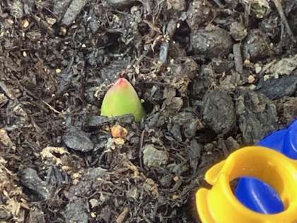 赤ちゃんのような芽に、子どもたちも大喜びです!まだ芽が出てない子は不安で悲しい顔をしていましたが、「大丈夫!もうちょっと暖かくなったら絶対に出てくるよ〜!」と励ますと、安心して笑顔になりました〜。