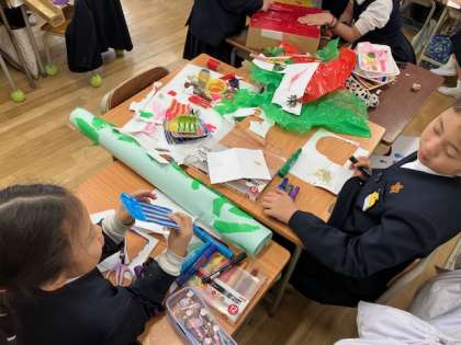 2年生のおもちゃづくりも佳境に入りました。手作りおもちゃが出来上がってきました。