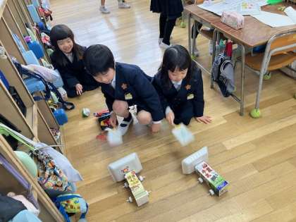 おもちゃランドは、2年生が1年生をしょうたいして遊んであげる取り組みですが、2年生は自分たちで作ったおもちゃがとっても楽しいようで、自分たちで遊ぶのに夢中です!