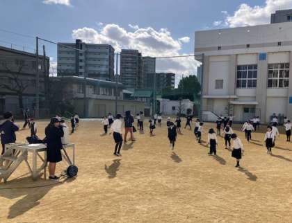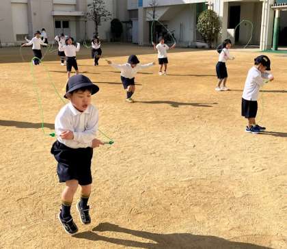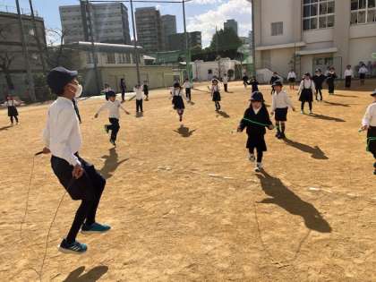 15分休み、1年生のなわとび集会です。ジャンボリ ミッキーの曲に合わせてどんどん跳びます。