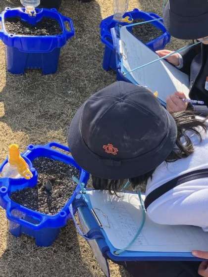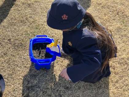 今日は、子どもたちの「チューリップの芽はどんな音をだすのかな?」という子もいて、みんなで音を聞いてみることにしました。