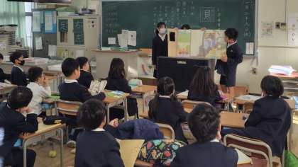 5・6年生の図書委員さんたちが、1〜3年生の教室に行って絵本の読み聞かせを行いました。
