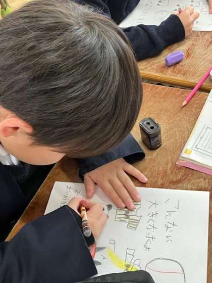 2年生、「こんなに大きくなったよ」メッセージカードを作りました。