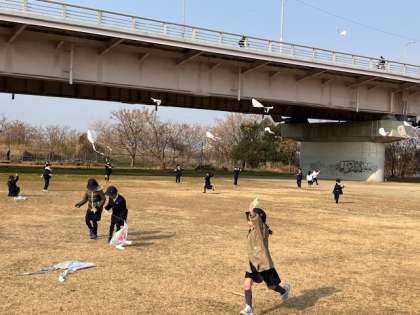 走りながら揚げることができると、次は糸を伸ばして高く揚げれるようになります。