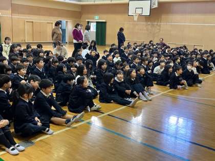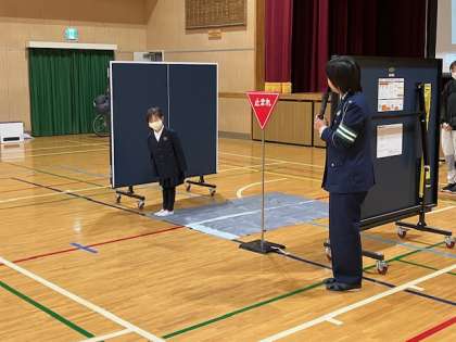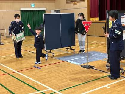 各クラスから一人、道路を渡る練習をしました。立候補も多く、じゃんけんで選ばれました。