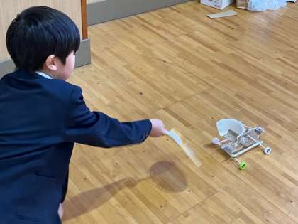 2年生が金曜日に行うおもちゃランドの練習をしています。