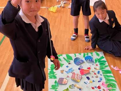 2年生が1年生を招待して、手作りおもちゃで楽しい時間を提供してくれます。