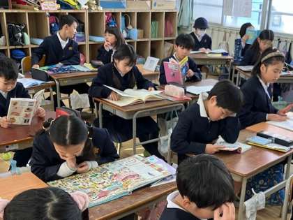 今週は豊仁小学校の読書週間です。朝の読書タイムも今日が最終回です。1年生、2年生、3年生の教室の様子です。