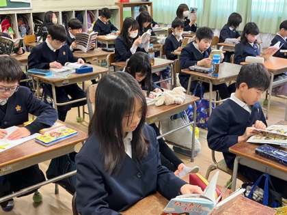 4年生、5年生、6年生の様子です。高学年になると、本を読む姿勢が変わりますね。