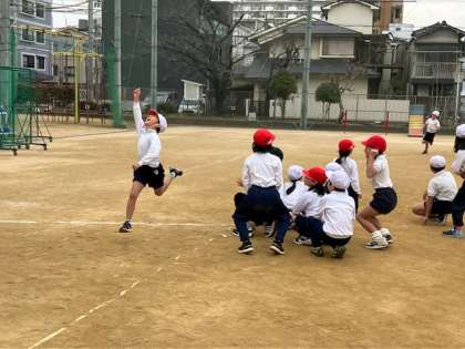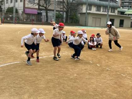 バトンではなく手でデンしますが、走者の並び位置はオープンコースの着順で内側から並ぶ方式を練習しています。