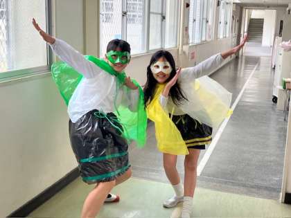 生活点検週間なので、廊下を走ってないか、名札を出してるか、の呼びかけをしてくれるそうです。今後、15分休みと昼休みに登場してくれるそうです。