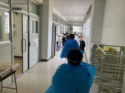 廊下を走っている6年生を見つけて、レンジャーが緊急出動しました!