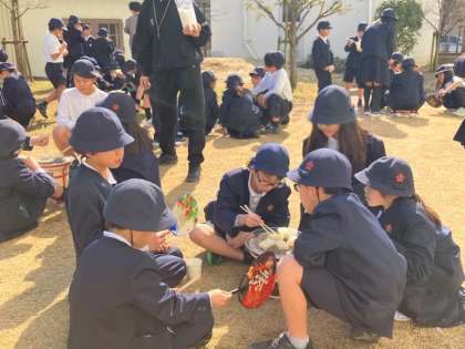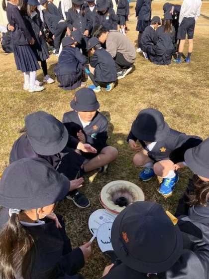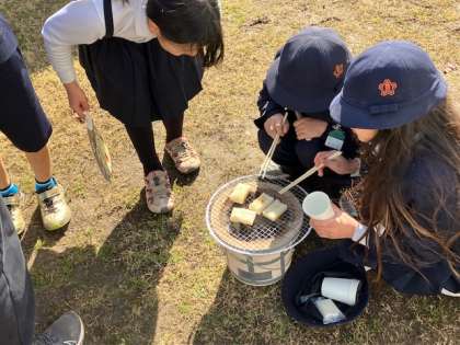 3年生で七輪体験をしました。天気が良くて絶好の七輪日和です!