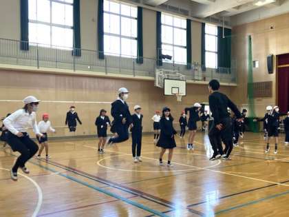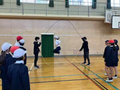 クラスごとで夢授業を行いました。子どもたちもダブルダッチに慣れてくると、うまく連続で飛び越えていけるようになっていました。