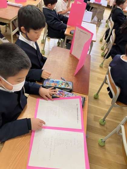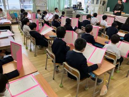入学式では、今の1年生が先輩の2年生として、歓迎の言葉を言います。言ったり、歌ったり、合奏したりします!