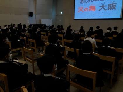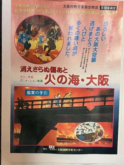 1945年の大阪大空襲のアニメ映画を観ました。約20分の映画ですが、全員、一言も発せず、ずっと見入っていました。