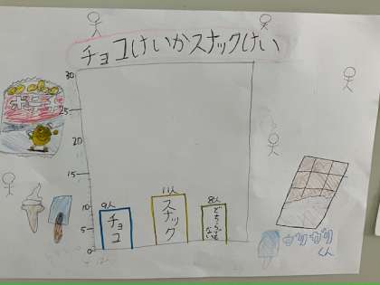 4年生の教室に、自分たちでとったアンケート結果が貼られていました。