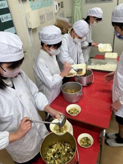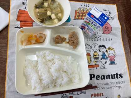 今日の給食献立は、ごはん・鶏肉の八丁味噌だれかけ・ちくわと大根の炒め煮・五目汁・牛乳です。