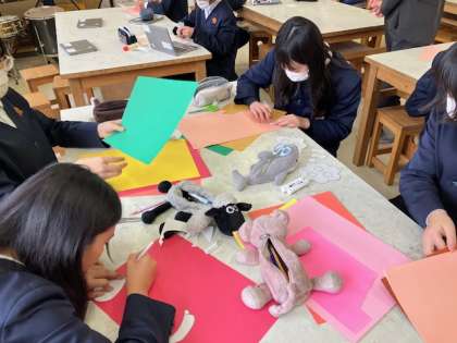 新聞委員会では、卒業・入学バージョンの飾りの制作もしていました。