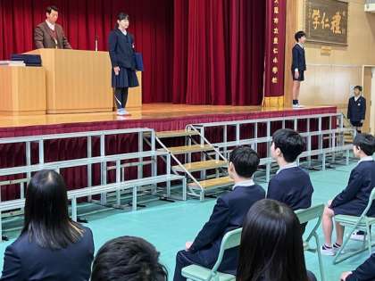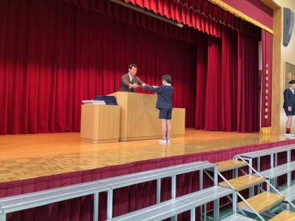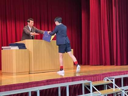 証書をもらって、クルリするのがずいぶんと上手になりました。そして正面を向いて、将来の夢を語ります。