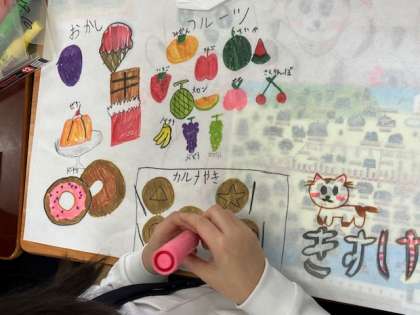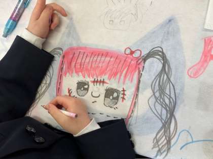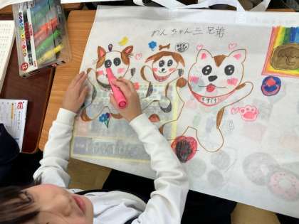 2年生で「図画お持ち帰りバッグ」に絵を描いています。