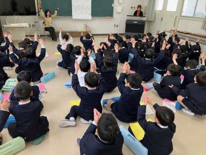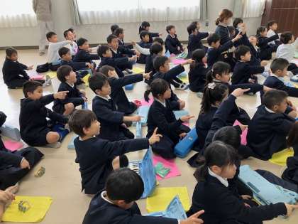 「キラキラ キラキラ」という歌を手話付きで歌います。何回も練習してきたので、全員できるようになってきています。いろんな手話をこれから少しずつ、こういう機会にできるようになってくれるといいですね〜!
