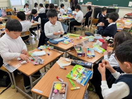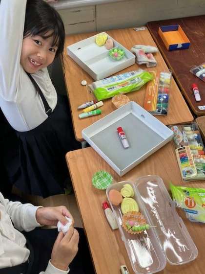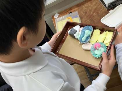 お料理ではありませんが、紙粘土に色をつけて、自分の好きなものを入れていきます。