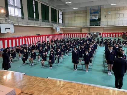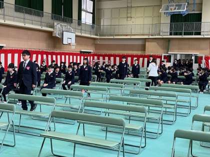 今日は、卒業式の予行です。当日通りに10時開式で予行を始めました。