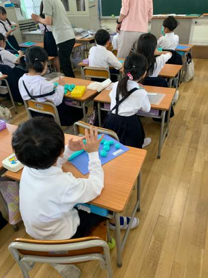 粘土で自分の好きな物をつくっています。人型の物は担任の先生だそうです。