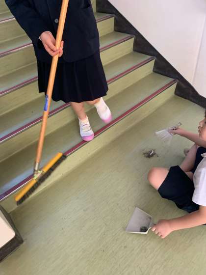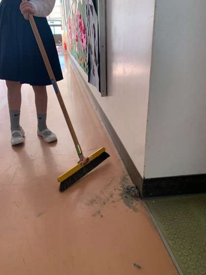 自分たちの担当の場所を丁寧に掃除しています。協力して取り組む姿は素晴らしいです。