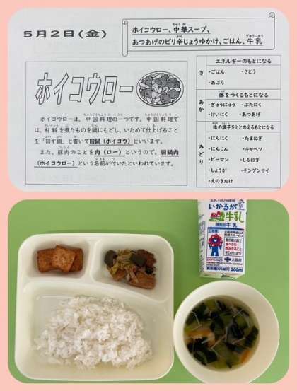 「ホイコウロー」は、ボイル後に料理酒で下味をつけた豚肉(ばら)を主材に、キャベツ、ピーマンを使用した炒め物です。しょうが、にんにく、白ねぎで風味を加え、テンメンジャン、砂糖、塩、濃口しょうゆを合わせた調味液で味つけします。