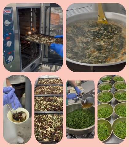 「とうふとわかめのスープ」は、焼き豚、とうふ、にんじん、もやし、えのきたけ、わかめを使用し、中華スープの素で味つけしたスープです。