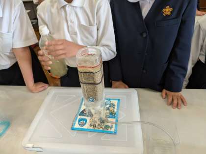 12日(月)、4年生は柴島にある浄水場に社会見学に出かけました。浄水場までは、歩いて行きました。淀川の水をくみ取り、家庭にと届けられるまでの様子を見学しました。またペットボトルを使って、実際に水がきれいになる実験をしました。子どもたちは、きれいになっていく水の様子に驚いていました。