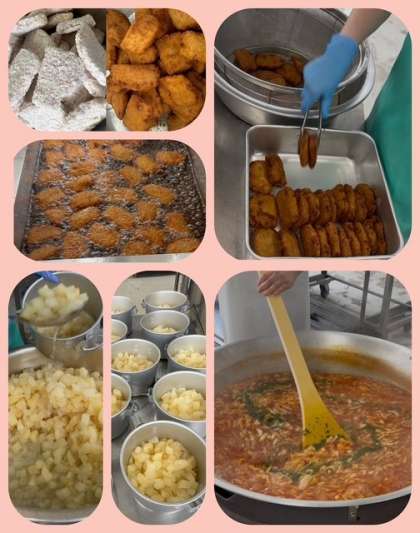 「トンカツ」は冷凍のまま、熱したなたね油で揚げます。