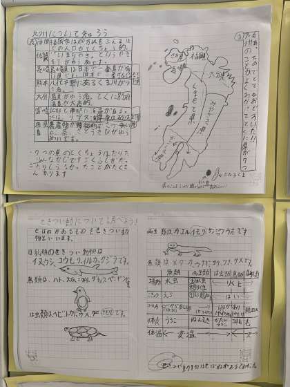 4年生の自主学習のノートです。週に1回、自分で課題を決めて取り組んでいます。しっかり調べてまとめることができています。