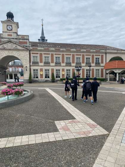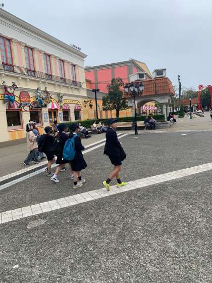班行動開始です。お昼ご飯を食べに行くグループや、乗り物に乗りにいくグループがあります。