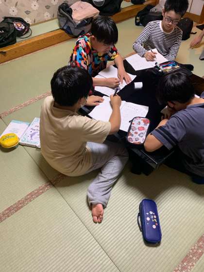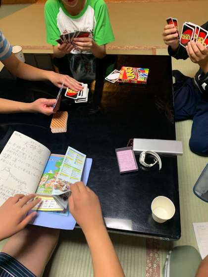 日記とお小遣い帳を書いています。書き終わったところは、トランプなどをしています。