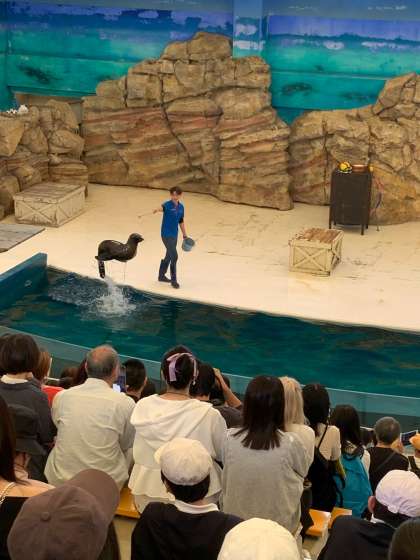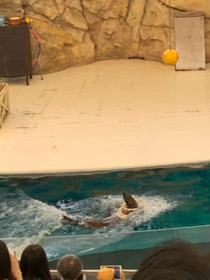 アシカのジャンプや輪っかのキャッチなどの技を見せてくれました。