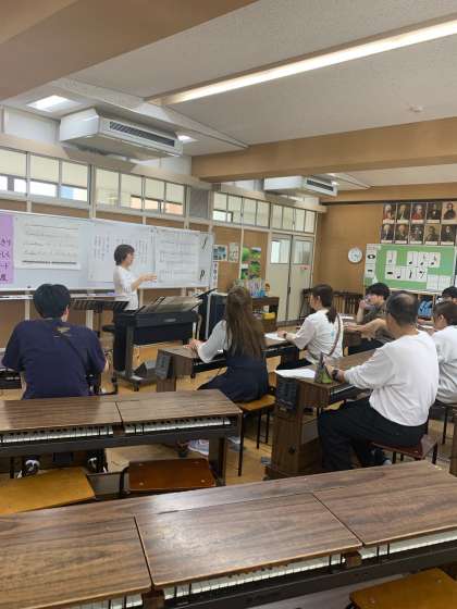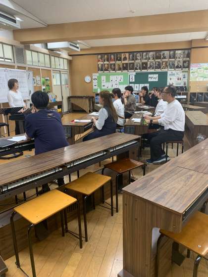 今日の放課後、経験年数が少ない教員が中心となって研修会を行いました。今回は音楽の指導について先輩教員に教わりました。これからの指導にいかしていきます。