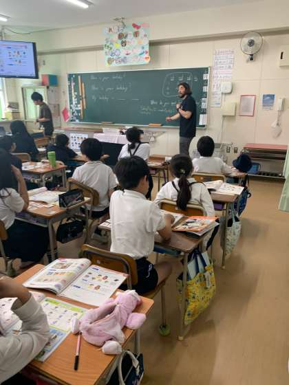 5年生は、英語で誕生日プレゼントで欲しい物は何?という学習をしていました。moneyと答える児童もいました。