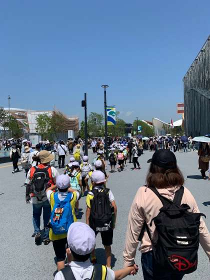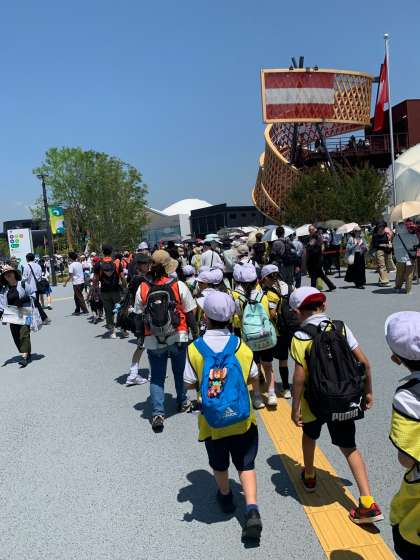 万博会場につきました。今日もたくさんの人が訪れています。