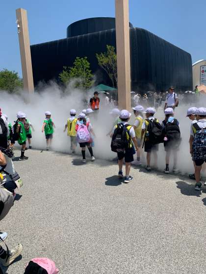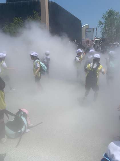 2年生もミストシャワーを楽しみました。かなり真っ白になりました。