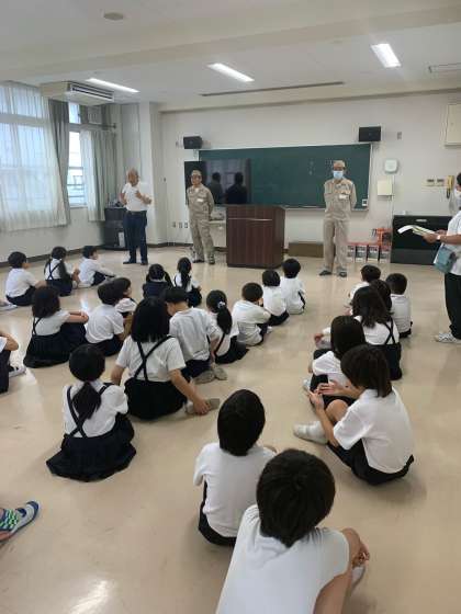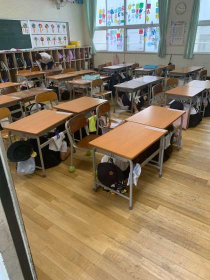 地域ごとに教室に集まり、防災リーダーの紹介とお話がありました。その後、地震と津波を想定した避難訓練を行いました。静かに素早く避難することができました。