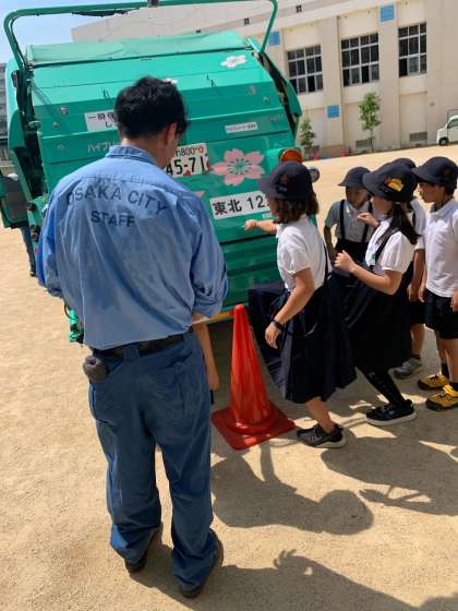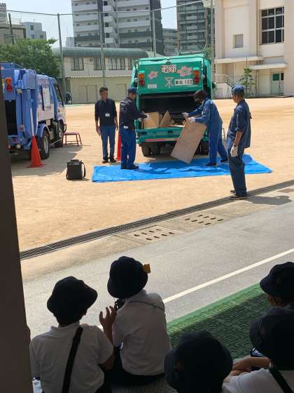 パッカー車に乗せてもらったり、粗大ゴミが砕かれて取り込まれる様子を見せてもらったりしました。パッカー車の仕組みを学ぶことができました。