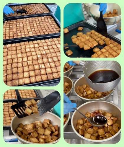 「あつあげのしょうがじょうゆかけ」は、焼き物機で焼いたあつあげに、しょうが汁、砂糖、濃口しょうゆで作ったタレをかけます。