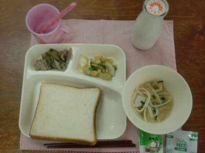 大阪名物きつねうどんをイメージした献立です。三角の「おあげさん」と、「とろろこぶ」が入っています。