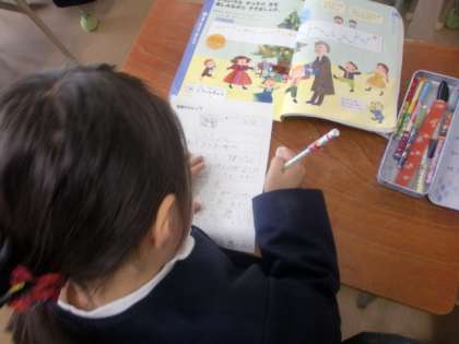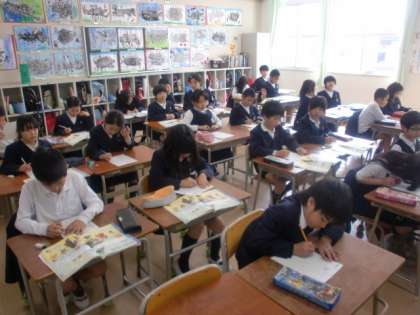 リズムや旋律の反復など音楽を形づくっている要素を感じ取りながら、ワークシートに書きました。